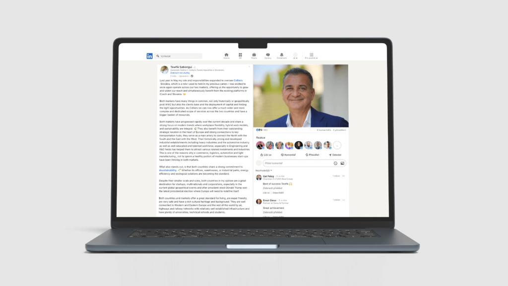 Jsme rádi, že jsme mohli s Colliers navázat spolupráci, a těšíme se na další výzvy a příležitosti, které nás společně čekají.